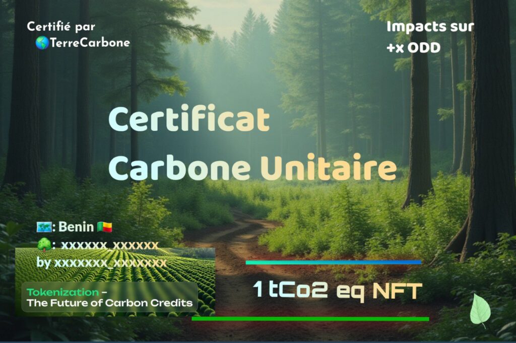 Certificats carbone émis conformément à la norme ERC-1155/ERC-721 pour les NFT. Ces certificats ont été conçus à partir de crédits carbone générés par des projets/producteurs agricoles enregistrés sur notre plateforme TerreCarbone.